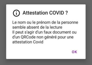 Si vous utilisez un faux formulaire ou un formulaire mal remplir, l’application indique qu’il y a un problème dans les informations de votre code QR.