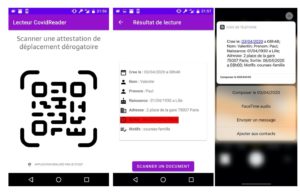 Pour la lecture du code QR par la police ou la gendarmerie. Comme l’explique iGen, cette lecture est effectuée par une application Android développée par le ST(SI)2 (service des technologies et des systèmes d’information de la Sécurité intérieure) nommée CovidReader. Une application qui tourne uniquement sur les smartphones NEO — des smartphones Sony (smartphones Xperia X ou tablettes Xperia Z4) qui fonctionnent sous une version Android modifiée et sécurisée baptisée Secdroid (pour Sécurité et Android). Les données saisies dans les champs de l’attestation numérique sont enregistrées en local sur le smartphone, elles ne sont pas collectées par le gouvernement et aucun fichier n’est constitué. Christophe Castaner, ministre de l’intérieur a confirmé lundi matin sur France Info qu’aucune donnée n’était stockée par le scan du code QR.