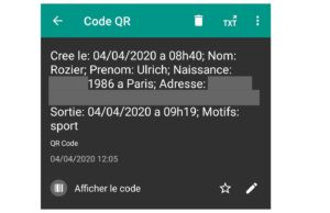 Concernant le générateur d’attestation numérique, le gouvernement ne semble pas stocker sur leurs serveurs vos données personnelles. La générateur de formulaires ne fonctionne qu’en local dans notre navigateur. Ces données ne servent donc qu’à générer un code QR. C’est ce code QR qui contient l’ensemble de vos données stockées grâce à des points. Il faut donc générer un nouveau code QR à chaque sortie, étant donné que la date et l’heure de la création du code QR sont mentionnées. Vous pouvez lire ce code QR à partir d’une application sur iPhone et Android.