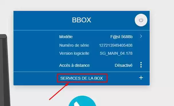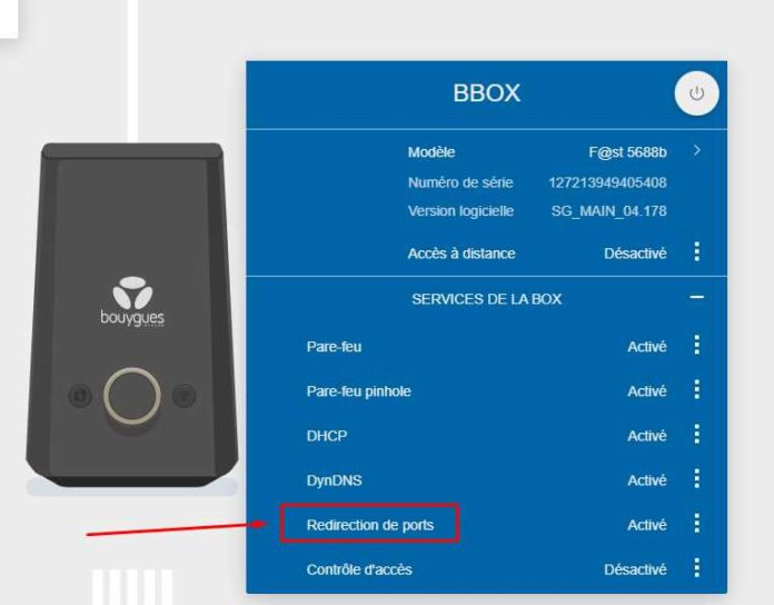 - Cliquez sur Services de la box puis sur Redirection de ports.
