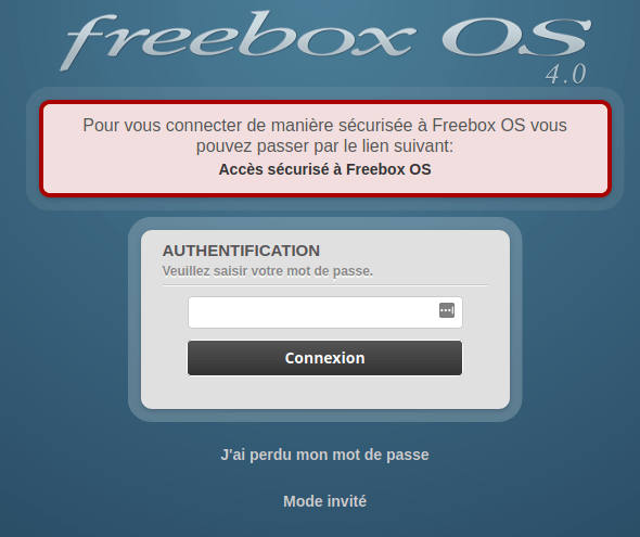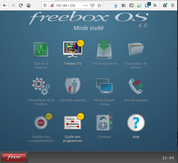 Pour gérer les ports de votre Freebox, il est nécessaire de se connecter à l’interface de votre Freebox, dans votre navigateur internet, allez sur http://mafreebox.freebox.fr/ puis cliquez sur le bouton Free en bas à gauche puis Connexion.