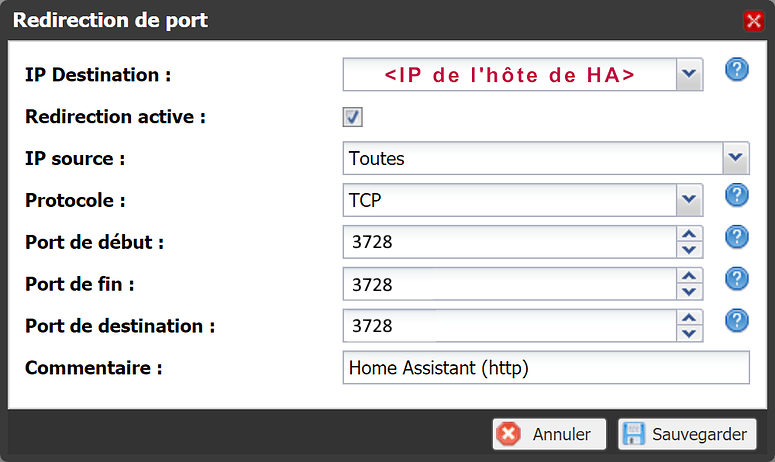 • Port de destination : 3728