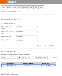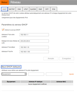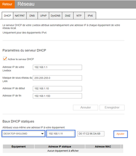 • Vérifiez que vous êtes dans l’onglet DHCP.