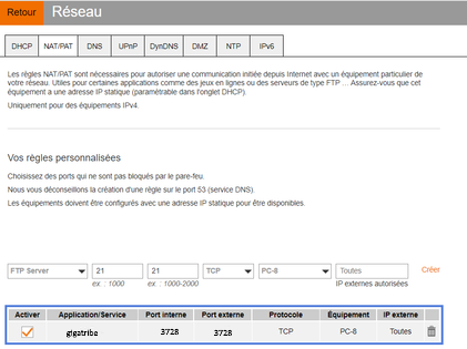 Configurer la connexion directe de Gigatribe sur une Livebox 6 (Orange)