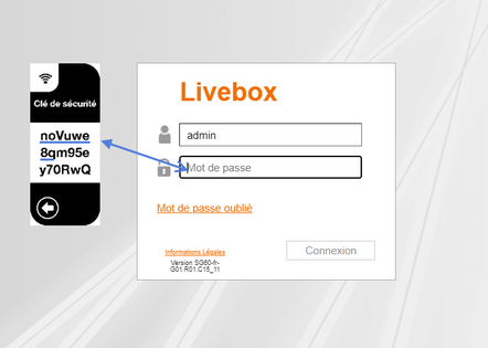 si vous ne l’avez pas modifié, le mot de passe dadministration par défaut se trouve sur l’écran de votre Livebox et est constituée des 8 premiers caractères (sans espace) de la clé de sécurité.