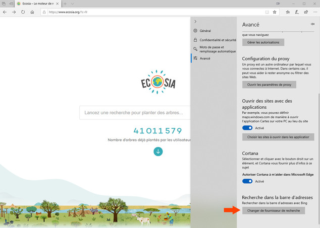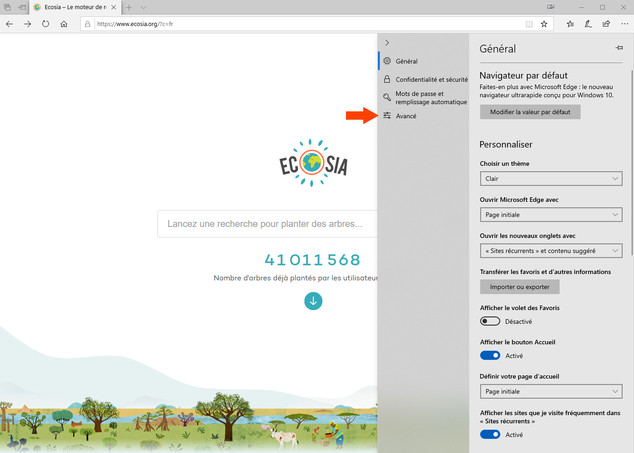Afin de changer ce paramètre, il faut toujours se rendre dans la section des réglages avancés. Mais la procédure a en effet un peu évolué par rapport aux versions précédentes de Edge.