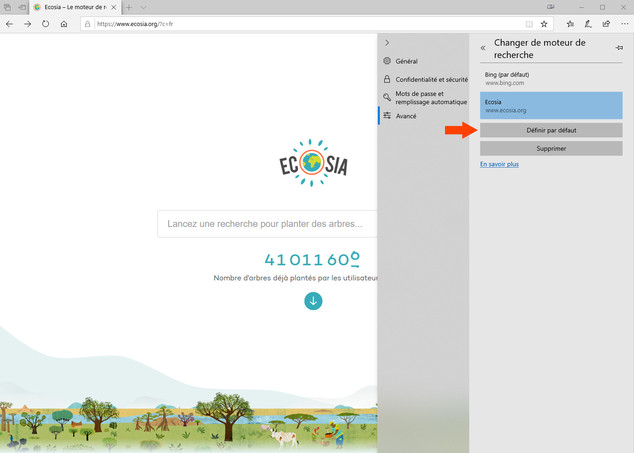 Désormais, lorsque vous effectuerez une recherche dans la barre d’adresse en haut d’une page Internet, le résultat apparaîtra dans le moteur que vous avez indiqué par défaut, et non plus dans Bing.