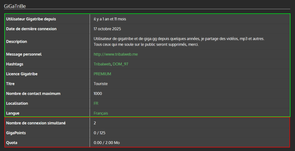 Le but étant de pouvoir discuter et partager entre utilisateurs Gigatribe et Giga.gg.