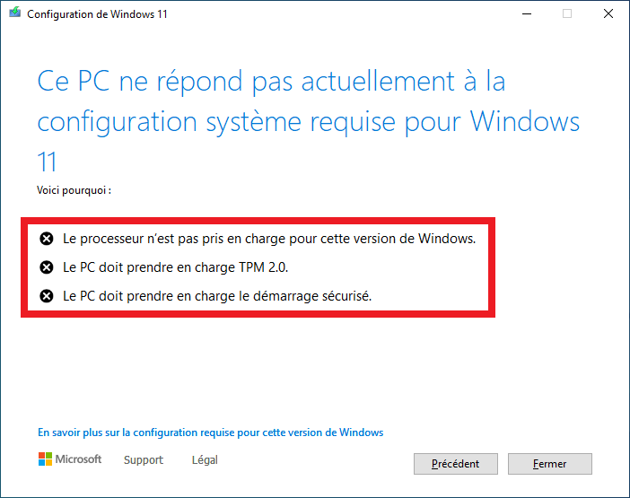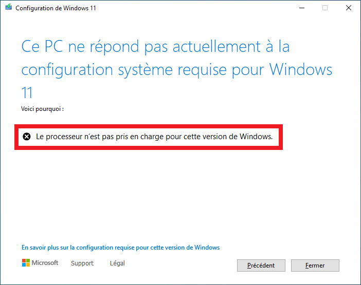 Le seul élément qui n’est pas “certifié” pour Windows 11, c’est votre processeur qui est un peu trop vieux ?