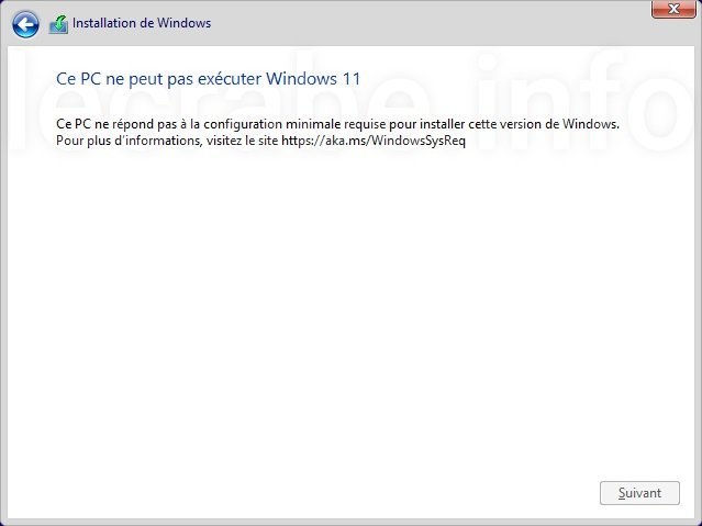 Une fois PowerShell fermé automatiquement, vous pouvez relancer l’installation de Windows 11 qui cette fois, vous affichera l’écran suivant :