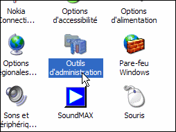 - Basculez vers l’affichage classique en cliquant sur le lien approprié puis double-cliquez sur l’icône Outils d’administration.