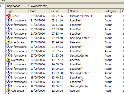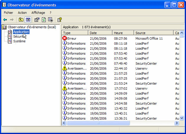 - Le journal Système contient les événements enregistrés par les composants système de Windows XP : l’échec du chargement d’un pilote par exemple.