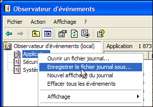 - Pour cela, l’observateur d’évènements, cliquez avec le bouton droit de la souris sur le journal à sauvegarder puis choisissez la commande Enregistrer le fichier journal sous.