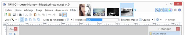 Qu’il s’agisse des réglages des outils, de la palette (dépliable), des accès rapides aux images ouvertes, des boutons (en haut à gauche) permettant d’afficher ou non les différentes boites (outils, couleurs, calques, historique) ou d’accéder à la configuration et aux aides ; c’est, pour nous, un sans-faute. Et cela sans compter le petit plus ajouté par la transparence des boites citées ci-dessus qui peuvent, en outre, être sorties de la fenêtre principale au besoin.