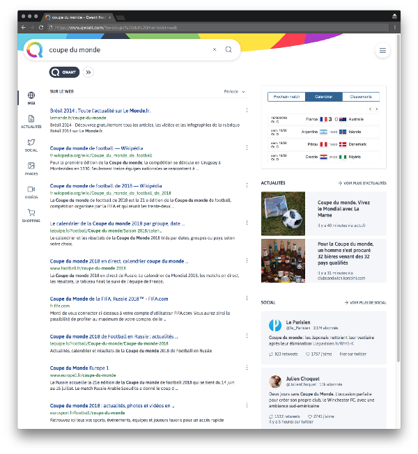 Pour repenser le design et l’interface utilisateur, Qwant explique qu’il s’est basé sur plusieurs tests lui permettant, par exemple, d’en tirer des cartes de chaleur des éléments qui attirent l’œil de l’utilisateur. Suite à de multiples analyses, le moteur de recherche a fait le choix d’abandonner ses trois colonnes traditionnelles (Web, actualité et réseaux sociaux). Néanmoins, les catégories apparaissent toujours dans une section plus petite présente à gauche de l’écran. Celle-ci rassemble les catégories Web, actualités, réseaux sociaux, mais aussi images, vidéo et shopping.